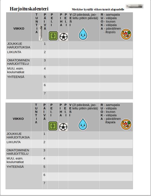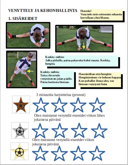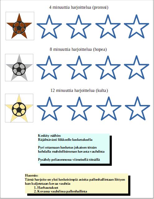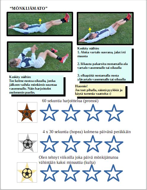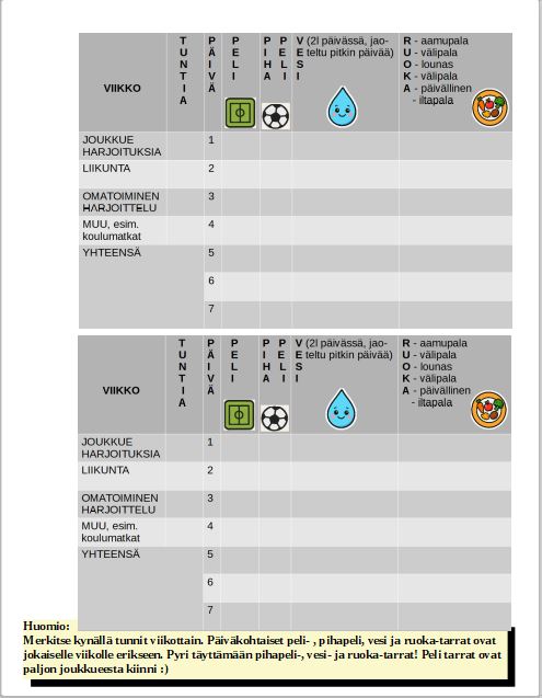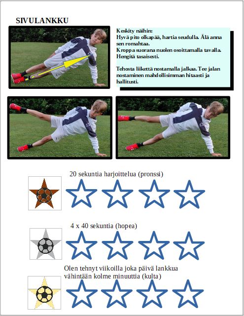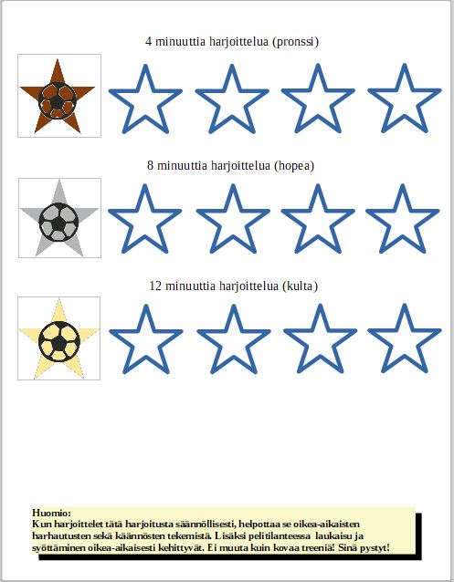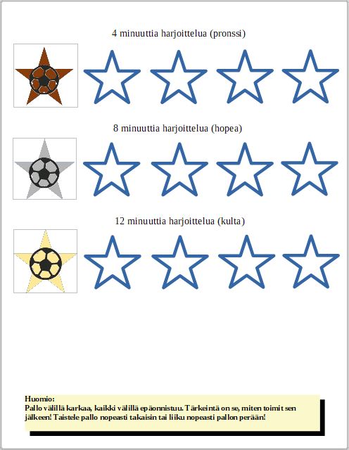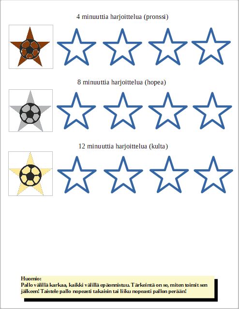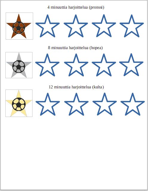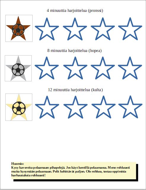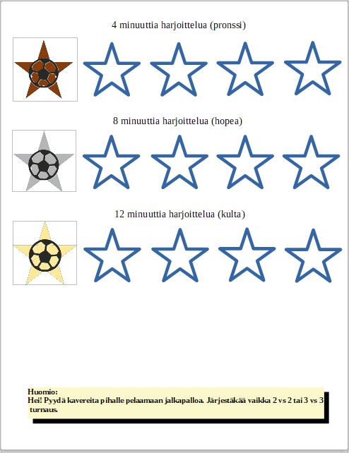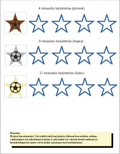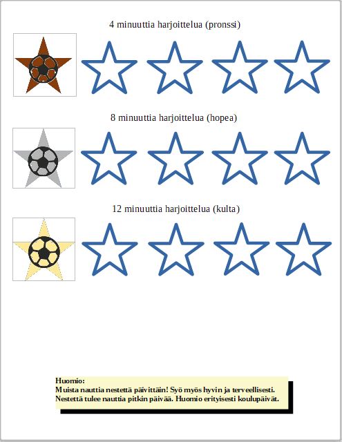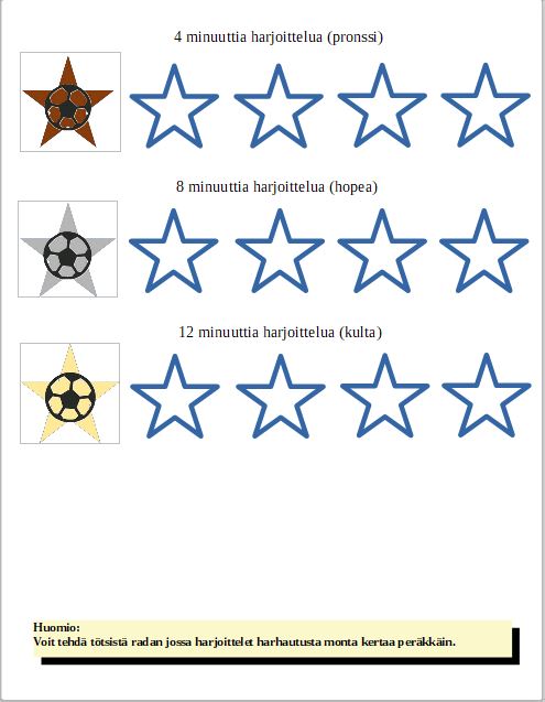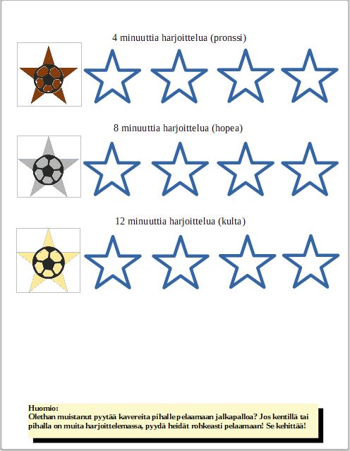 Saat liimata tarran jokaisesta harjoituksesta, pelistä tai liikuntasuorituksesta. Kun