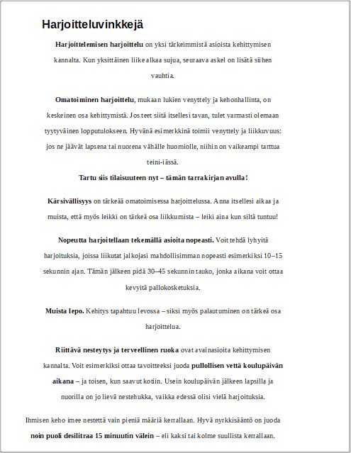 ja pian huomaat, että olet harjoitellut jo paljon ja voit palata harjoitteluun aina