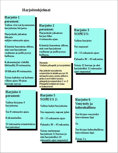 harjoituksia, joita voit tehdä kotona, puistossa, pihalla tai vaikka mökillä. Tehtävät